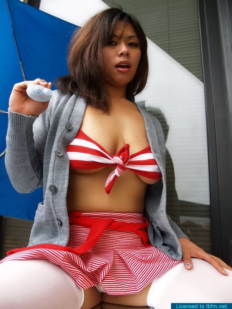 Little Brown Fucking Machines: Busty broad flashing her shaved twat while playing with a teddy bear